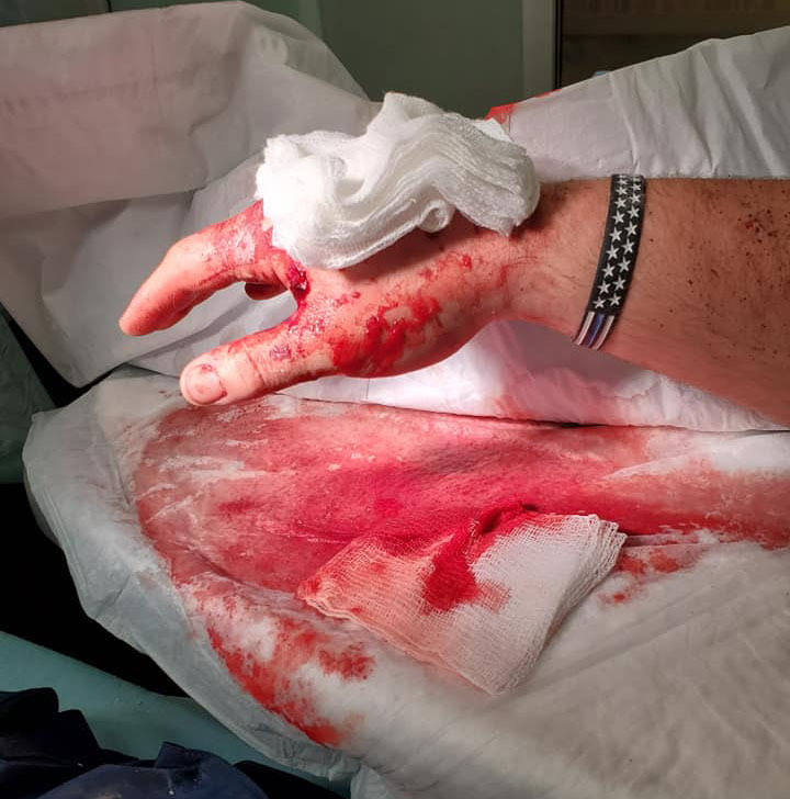 “Would just like to send a shout out to StopsBleeding™ and my perfect beautiful caring wife. Just a regular everyday chore of pulling the lawnmower out of the ditch almost turned deadly the 4 wheeler turned up like it has a thousand times before… this time it went south and it landed on my hand and it struck a main artery. Blood flew and went everywhere I was quickly bleeding out I was worried and making moves as quickly as I could I got to my first aid pack in my truck.